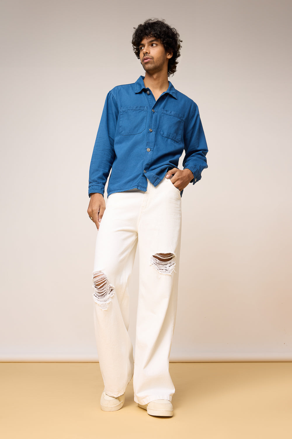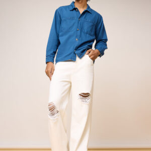 Antique White Ripped Men’s Wide Leg Jeans