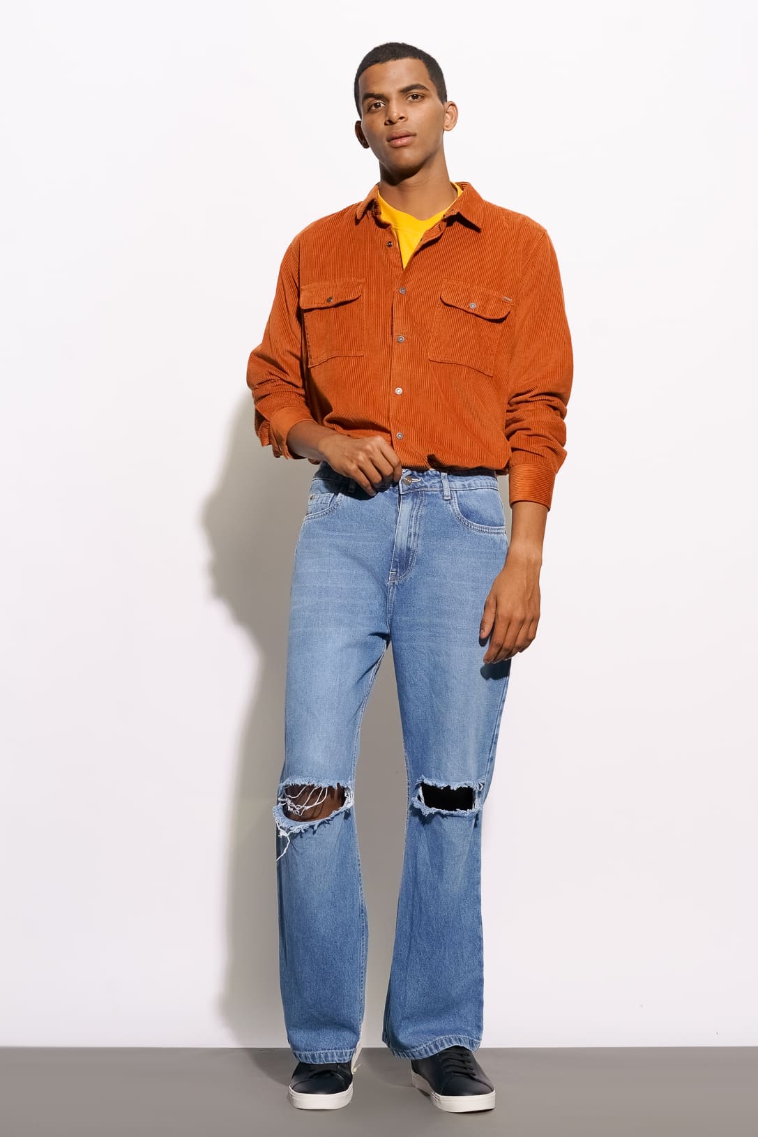 Men’s Blue Faded Distressed Wide Jeans